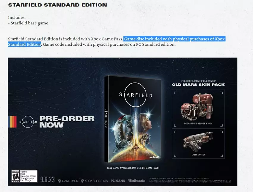 Er komt een disc-editie van Starfield, maar alleen voor de Xbox, maar PC-gamers kunnen alleen rekenen op activeringscodes voor het spel, zelfs als ze de fysieke editie kopen.