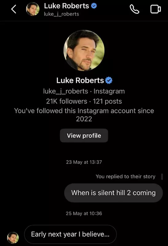 Een Instagram-gebruiker vroeg Silent Hill 2 Remake-stemacteur James Sunderland wanneer de game uitkomt. Waarop de acteur antwoordde: "Ik denk begin volgend jaar."