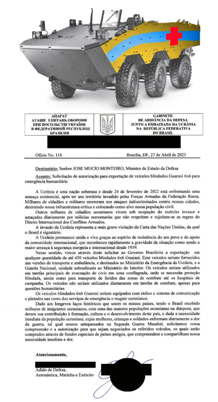 Volgens de Braziliaanse krant Info Defensa heeft de afdeling strategische zaken, defensie en wapens van het Braziliaanse ministerie van Buitenlandse Zaken de Oekraïense regering geweigerd. Ook al heeft Oekraïne gegarandeerd dat de voertuigen niet betrokken zullen worden bij gevechtsoperaties.