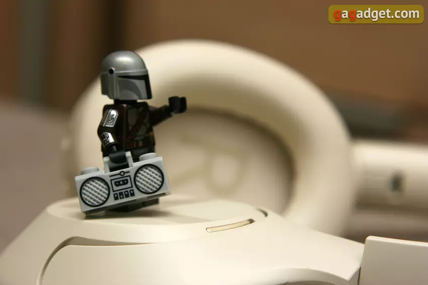 Ik denk dat het na het beschrijven van het besturingssysteem al duidelijk is dat het dubbelzinnig is en anders dan wat we gewend zijn. De volumeregeling met één knop is vreemd, en het gaat omhoog en omlaag met verschillende "snelheid": één keer omhoog drukken verandert het volume met één stap, en omlaag - met twee stappen. Het lijkt logisch: het is belangrijker om het volume snel te verlagen dan het hard te zetten, maar het zou ook zonder al deze trucjes kunnen, gewoon door een tweede knop toe te voegen. Maar een aanraakknop die tijdelijk de transparantie inschakelt en het geluid dempt is erg cool. Als je altijd transparantie wilt gebruiken zonder het geluid te dempen, dan kun je met de ANC-knop drie modi doorlopen: met, zonder en met transparantie.