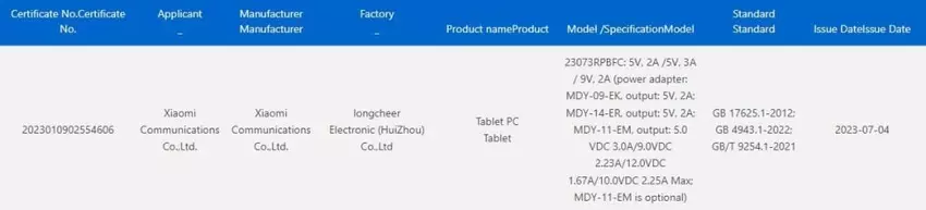 Deze keer is de nieuwigheid gespot in de database van het Chinese certificeringsbureau 3C. De gadget heeft modelnummer 23073RPBFC. Volgens de documenten ondersteunt de nieuweling opladen tot 22,5W. Ter vergelijking: het huidige Redmi Pad-model laadt op met een voeding van 18W.