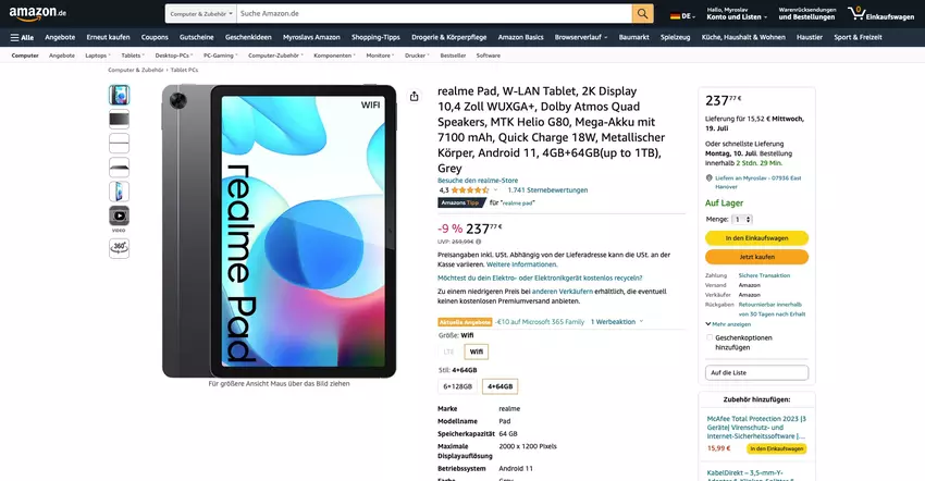 - realme Pad 6/128GB, Wi-Fi - check price on amazon.