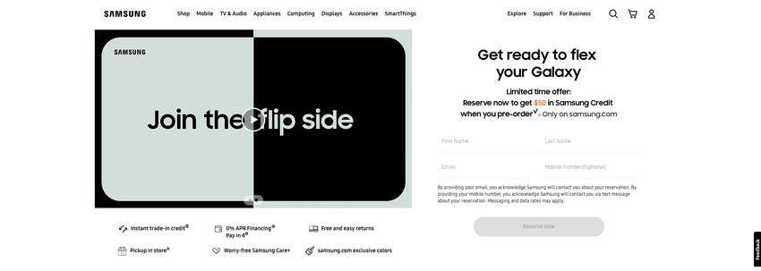 Iedereen die voor 26 juli de Galaxy Flip 5, Galaxy Fold 5, Galaxy Watch 6 en Galaxy Tab S9 of meerdere apparaten tegelijk pre-ordert, ontvangt $50 Samsung Credit. Deze kunnen worden besteed aan de aankoop van de apparaten. Overigens is de actie voorlopig alleen geldig voor gebruikers in de VS. Om te pre-orderen moet je je voornaam, achternaam, e-mailadres en mobiele nummer opgeven.