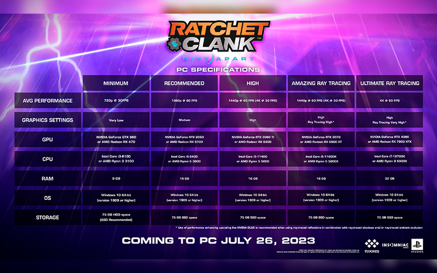 De PC-versie van Ratchet & Clank: Rift Apart verschijnt op 26 juli en Sony heeft de systeemeisen van de game bekendgemaakt.