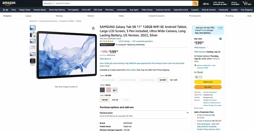 - Samsung Galaxy Tab S8, 128GB - check price on amazon.