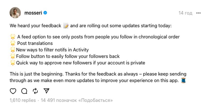 Bron: @mosseri