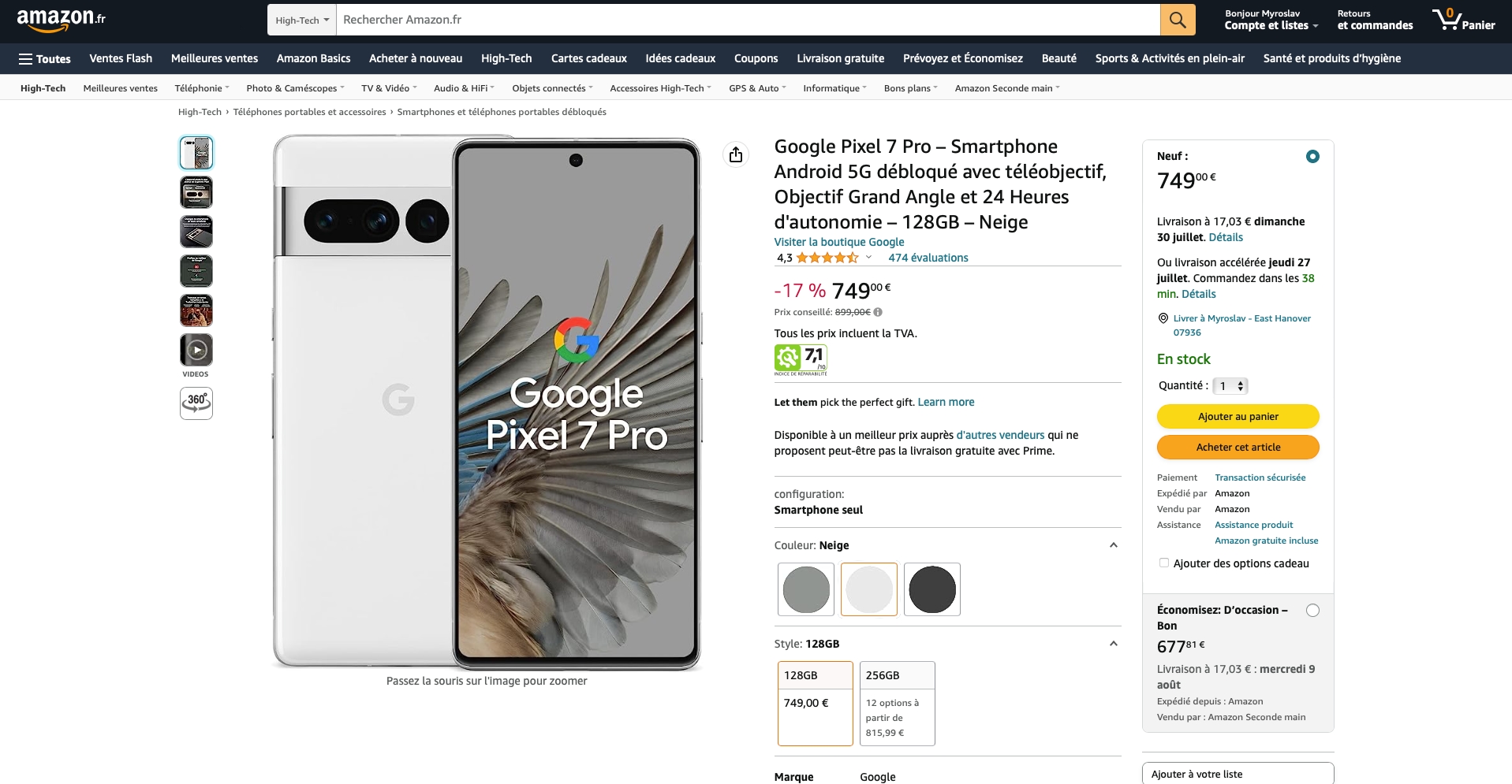 De smartphone wordt verkocht voor check price on amazon. Er zijn twee kleuren beschikbaar: Vert Sauge en Neige. Ook is er één geheugenwijziging - 128GB.