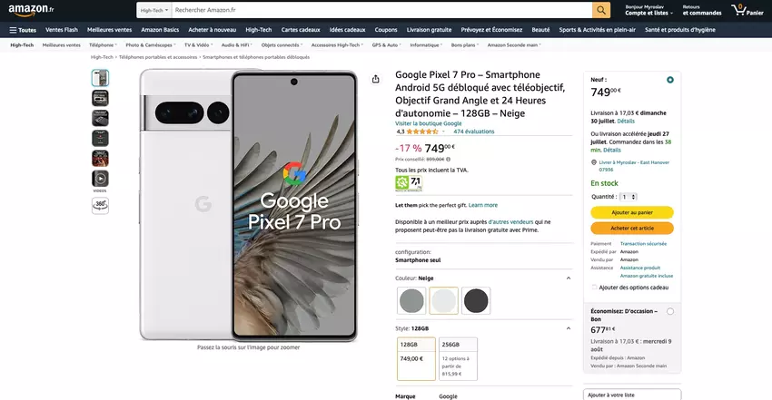De smartphone wordt verkocht voor check price on amazon. Er zijn twee kleuren beschikbaar: Vert Sauge en Neige. Ook is er één geheugenwijziging - 128GB.