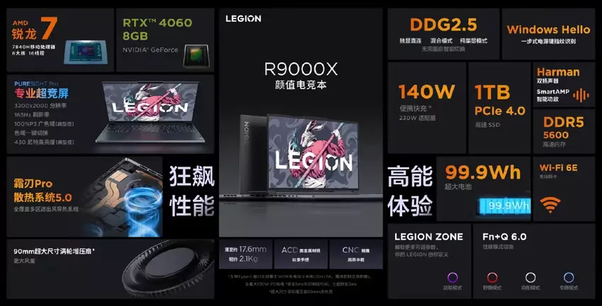 Lenovo Legion R9000X 2023: 165Hz beeldscherm, Ryzen 7 7840H chip en 140W laadvermogen