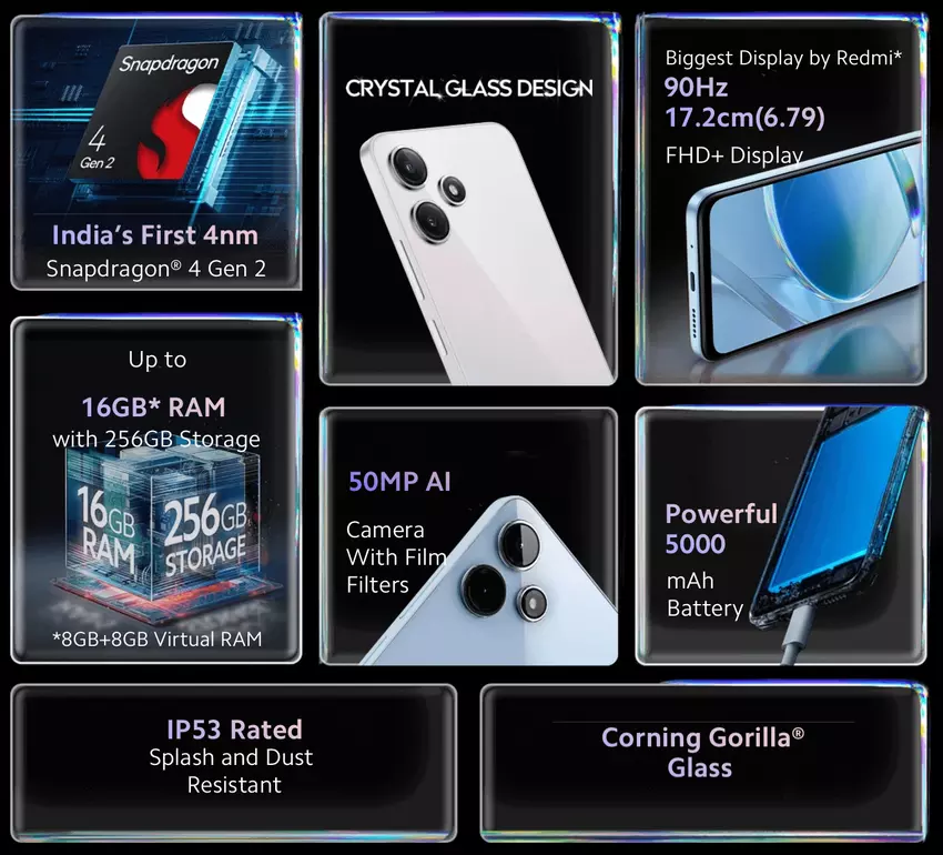 De Redmi 12 5G wordt aangedreven door een Snapdragon 4 Gen 2 processor. De gadget is ook uitgerust met een 5000 mAh batterij, 50 MP + 2 MP hoofdcamera, 8 MP frontcamera, 4/6/8 GB RAM, tot 256 GB opslag, zijdelings gemonteerde vingerafdrukscanner en een 3,5 mm koptelefoonaansluiting. De smartphone wordt geleverd met een hybride dual-SIM en microSD-slot. Uit de doos draait de nieuweling op het Android 13-besturingssysteem met MIUI 14-interface.