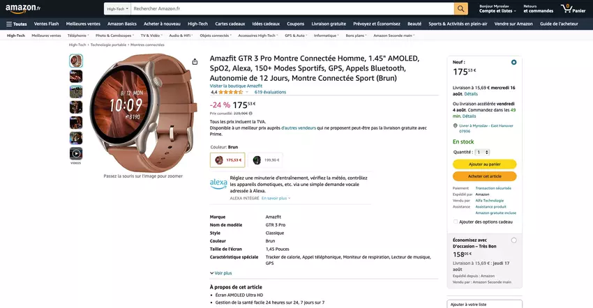 We hebben het over model 2021 - Amazfit GTR 3 Pro. Het apparaat in de kleur Brun wordt op Amazon verkocht voor 99,90 € 159,90 €, -38%, een daling ten opzichte van 99,90 € 159,90 €, -38% een korting van 99,90 € 159,90 €, -38%. Het horloge in de kleur Noir is duurder - check price on amazon.