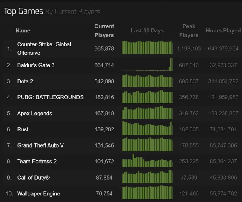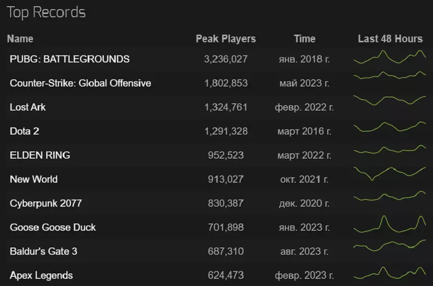 Op dit moment staat Baldur's Gate III op de tweede plaats wat betreft bezoekersaantallen, alleen achter de onwrikbare leider - Counter-Strike: Global Offensive en voor een van de populairste games op Steam - DOTA 2.