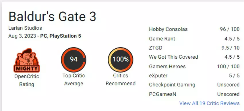 Vanwege het feit dat Larian Studios besloot om journalisten het spel niet voor de release te geven en vanwege de kolossale omvang van het project, zijn critici nu pas begonnen met het publiceren van de eerste recensies van Baldur's Gate III.