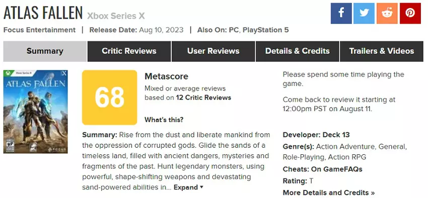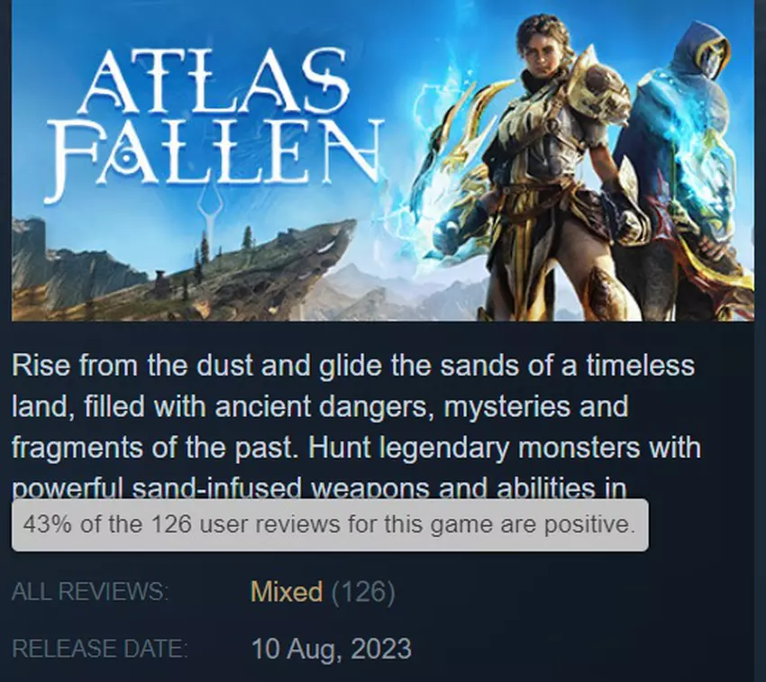 - is de situatie nog slechter: gebruikers gaven Atlas Fallen slechts 43% positieve beoordelingen.
