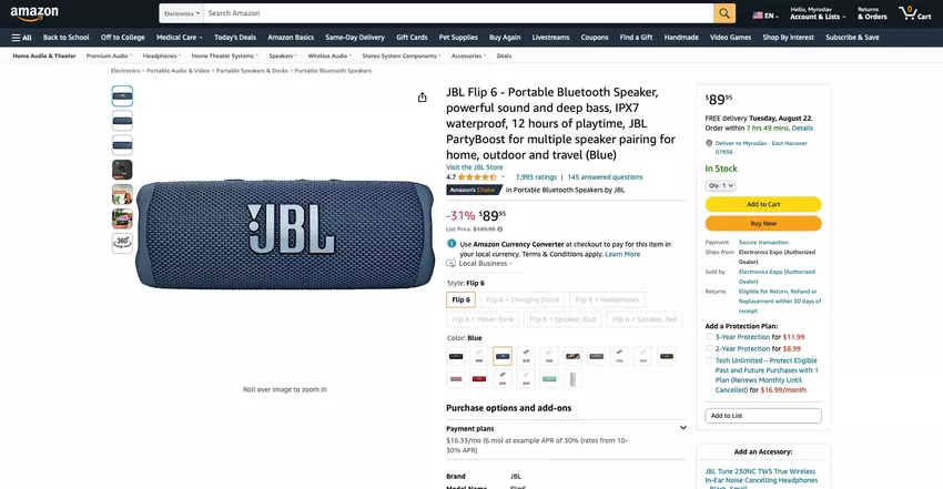 Voor $40 korting: de JBL Flip 6 met IP67-bescherming en een batterijlevensduur tot 12 uur is verkrijgbaar bij Amazon voor een promotieprijs.