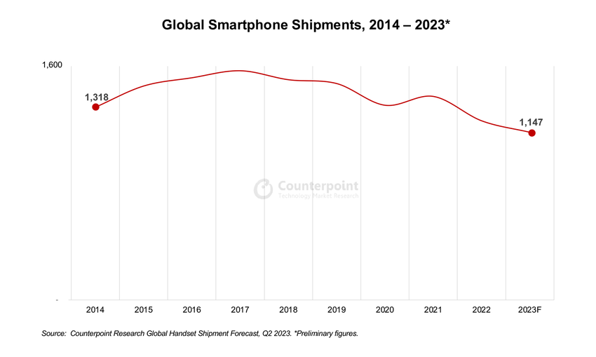 Hoewel het nog maar augustus is, heeft Counterpoint Research nu al zijn voorspellingen gedeeld voor de uitkomst van 2023 voor de smartphonemarkt.