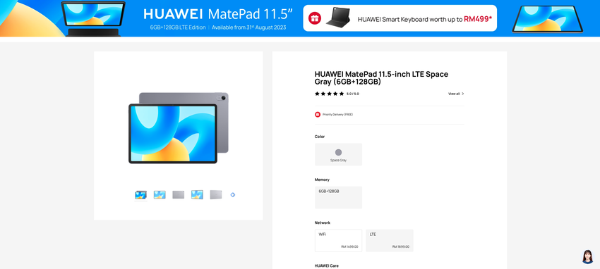 We hebben het over een model met LTE-ondersteuning. Volgens de fabrikant debuteert de gadget op 31 augustus in Maleisië en gaat hij 365 dollar kosten. Ter vergelijking: de MatePad 11.5 met Wi-Fi kost 320 dollar.