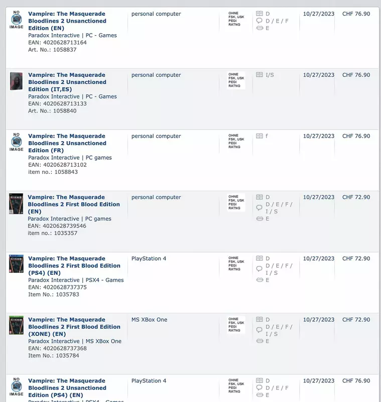 De release van het lang getreuzelde rollenspel Vampire: The Masquerade - Bloodlines 2 vindt mogelijk al dit najaar plaats - zoals blijkt uit informatie van een online winkel