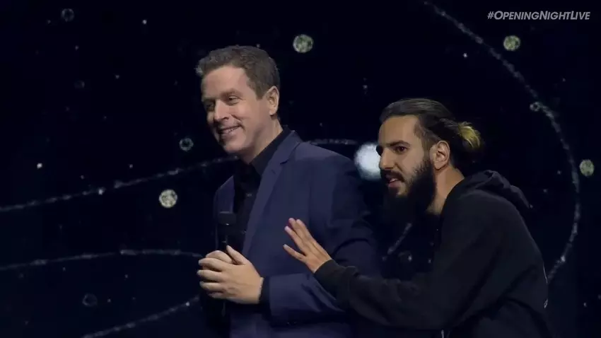 Het evenement was nog maar net begonnen of Geoff Keighley's monoloog werd onderbroken door een onbekende man die het podium op rende.