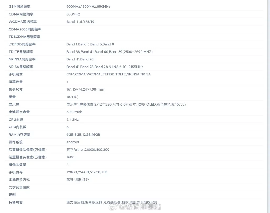 Maar er is wel informatie over de camera's. Aan de achterkant worden drie modules geplaatst met een resolutie van 200 MP, 8 MP en 2 MP. Voor degenen die graag selfies nemen, zal er een frontcamera zijn op basis van een 16 MP beeldsensor.