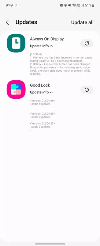 De applicatie werd uitgebracht met het nummer 8.3.30.4 en verbeterde Always On Display voor de Galaxy Flip 5 clamshell. De ontwikkelaars hebben bijvoorbeeld een probleem opgelost waardoor de stijl van de klokwidget veranderde tijdens roaming. De update verbetert ook het geheugengebruik bij het uitvoeren van bepaalde acties op het scherm. Dit zou de soepelheid en batterijduur van de smartphone in slaapstand moeten verbeteren.