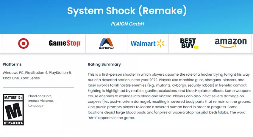 De rating wordt meestal kort voor de release van de game toegekend, dus we kunnen verwachten dat Nightdive Studios binnenkort een officiële releasedatum voor System Shock Remake op consoles bekendmaakt.