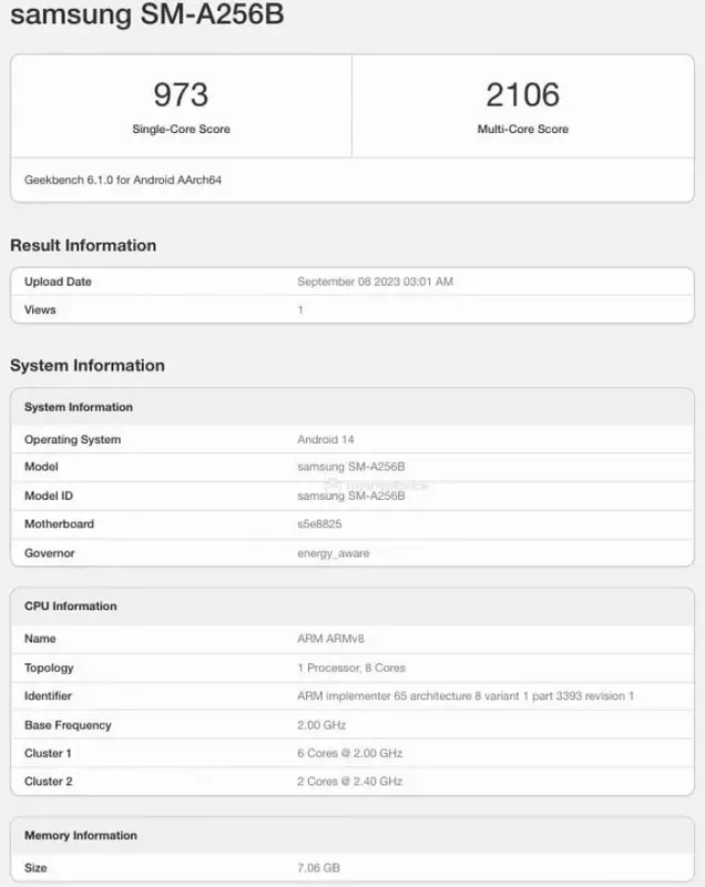 Samsung Galaxy A25 5G met Exynos 1280-chip en Android 14-besturingssysteem getest in Geekbench 6