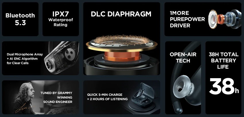 1More Fit Open Earbuds S50: ANC, IPX7-bescherming, Bluetooth 5.3 en tot 38 uur batterijduur voor $150