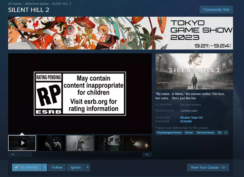 Op de pagina van Silent Hill 2-remake in Steam verscheen een banner van Tokyo Game Show 2023, die van 21 tot 24 september wordt gehouden.