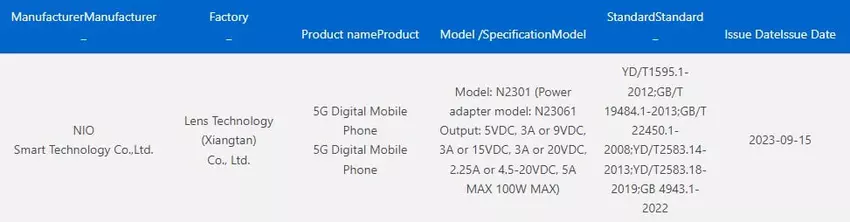 Deze keer is de Nio Phone gespot in de database van het certificeringsbureau 3C. De nieuwigheid passeert met het modelnummer N2301. Volgens het rapport zal de gadget snellaadtechnologie ondersteunen met een vermogen van 100W. Helaas is er geen informatie over de batterij van de nieuwigheid uitgelekt.
