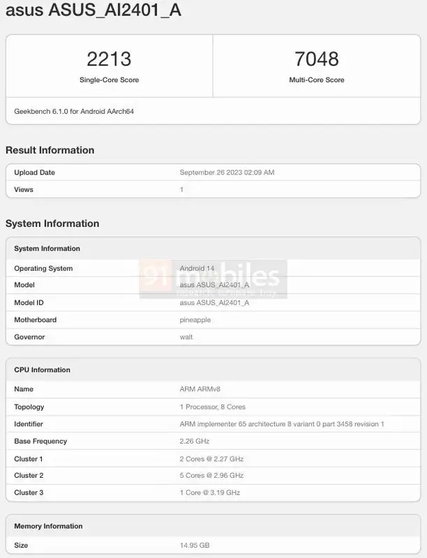 De smartphone heeft het modelnummer ASUS _AI2401_A. Hij is uitgerust met een Qualcomm Snapdragon 8 Gen 3 mobiele processor, die een 1 + 5 + 2 architectuur krijgt in plaats van 1 + 3 + 4. De volgende-generatie vlaggenschipchip wordt over een maand officieel onthuld tijdens de Snapdragon Tech Summit conferentie.