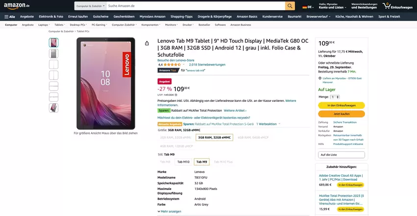 Je kunt de Lenovo Tab M9 budgettablet met korting kopen op Amazon.