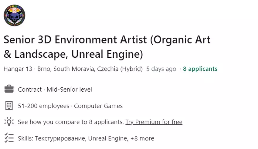 Deze conclusie kan worden getrokken door de openstaande vacatures van studio Hangar 13 te analyseren.