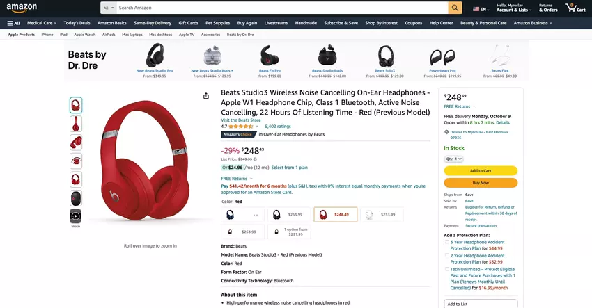 Beats Studio 3 op Amazon: draadloze hoofdtelefoon met ANC en Apple W1-chip, zoals AirPods, voor € 111 korting