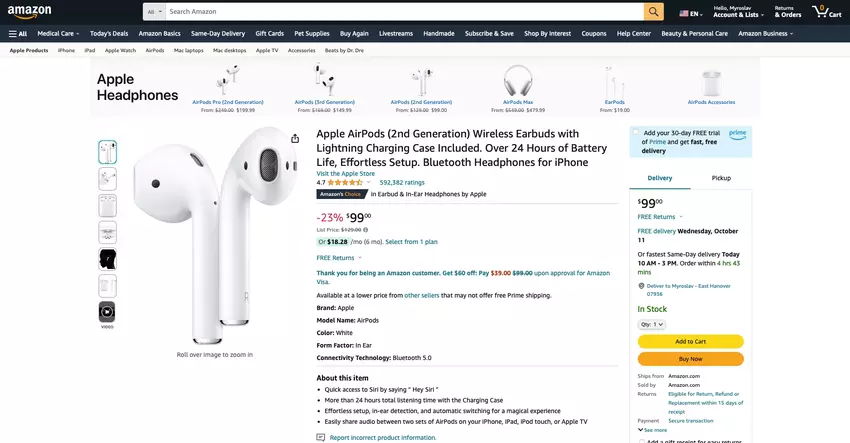 De korting is $30: AirPods 2 zijn te koop bij Amazon voor $ 99