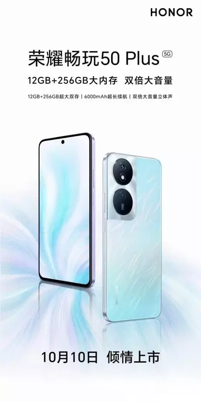 Het is officieel: Honor Play 50 Plus met 12 GB RAM, 256 GB ROM en een 6.000mAh batterij debuteert op 10 oktober