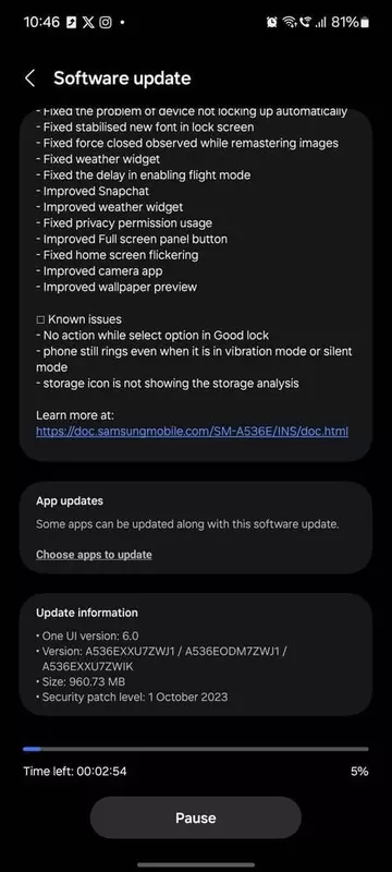 De update is uitgebracht onder de naam One UI 6.0 Beta 2. De firmware heeft buildnummer A536EXXU7ZWJ1 en weegt 1 GB. Het systeem kan nog steeds worden geïnstalleerd door smartphonebezitters in India. In andere landen verschijnt de software de komende dagen.