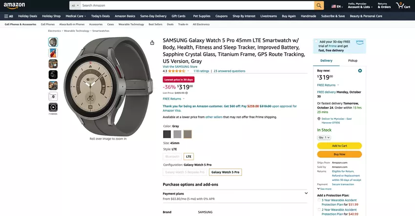 Korting $180: Samsung Galaxy Watch 5 Pro c LTE beschikbaar op Amazon voor een promotieprijs