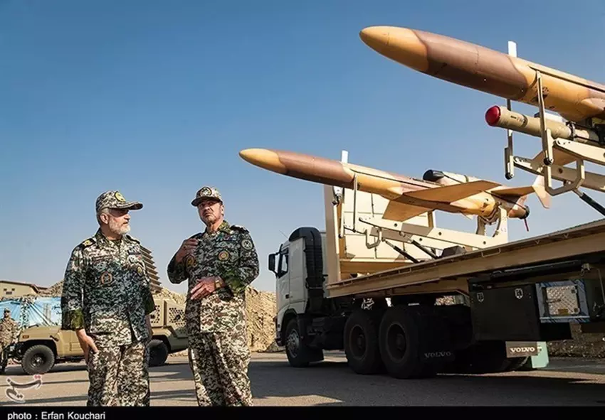 De Karrar drone werd vorig jaar door Iran geïntroduceerd. Hij kan tot een hoogte van meer dan 14 kilometer klimmen en snelheden tot 900 km/u bereiken. De drone kan Azaraksh raketten dragen, die een analogie zijn van de Amerikaanse AIM-9 Sidewinder.