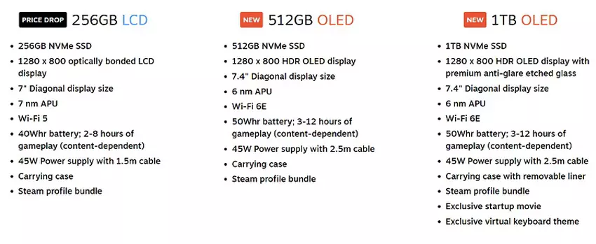 Er zijn 2 Steam Deck OLED-modellen beschikbaar voor kopers: