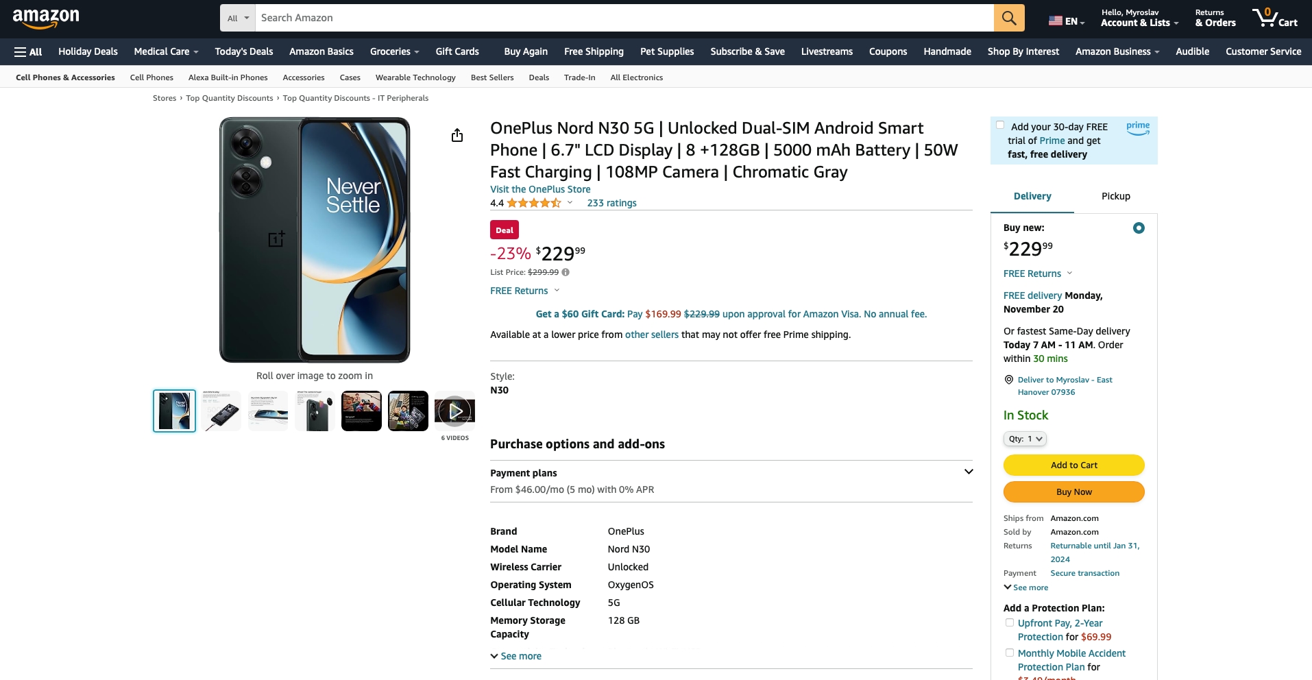 Naast de OnePlus Nord Buds 2 TWS hoofdtelefoon kun je nu ook de OnePlus Nord N30 5G smartphone met korting kopen op Amazon.