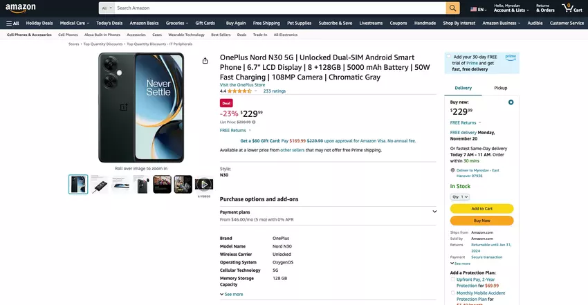 Niet alleen OnePlus Nord Buds 2: OnePlus Nord N30 5G is verkrijgbaar op Amazon met $70 korting
