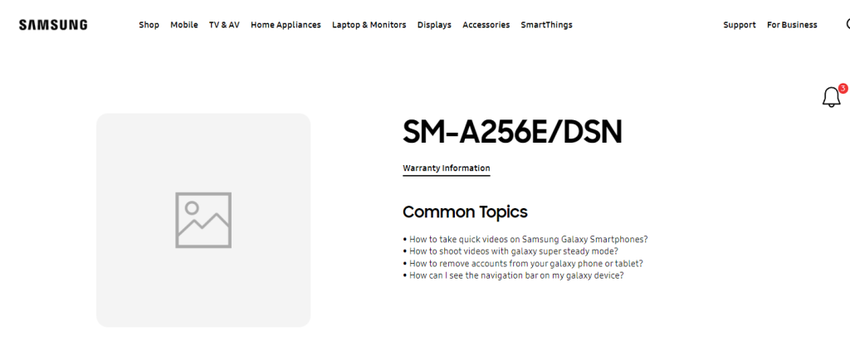 De Galaxy A25 5G is verschenen op de site van de Indiase technische ondersteuning van Samsung. De gadget komt voorbij met het modelnummer SM-A256E/DSN. Helaas zijn de specificaties van het apparaat niet uitgelekt.