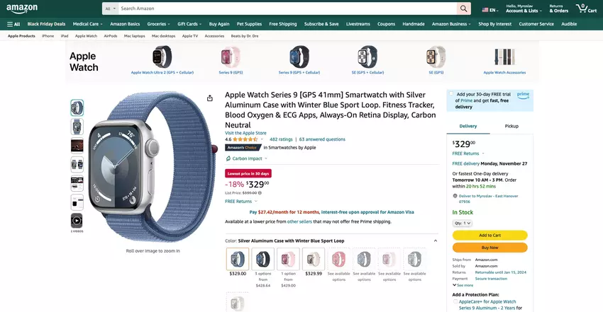 - Apple Watch Series 9 [GPS 41mm] - check price on amazon.