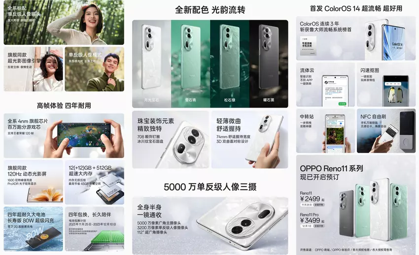 OPPO Reno 11: 120Hz OLED scherm, Dimensity 8200 chip, 4800mAh batterij met 67W opladen en Sony LYT-600 camera