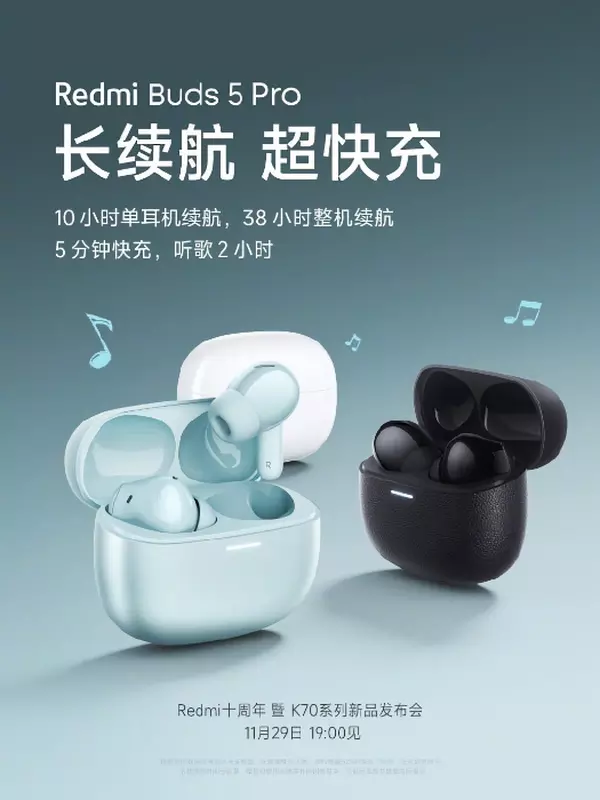 De Redmi Buds 5 Pro wordt op 29 november in China uitgebracht.