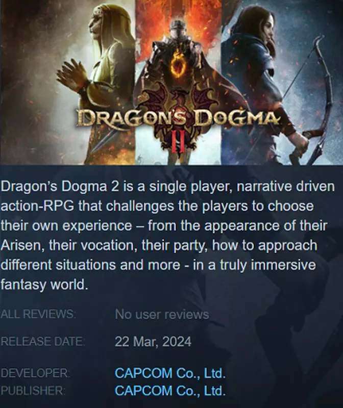 Op de gamepagina van Steam is "per ongeluk" de releasedatum van Dragon's Dogma 2 gepubliceerd.