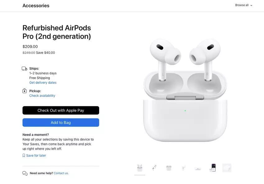 Apple is een paar weken geleden begonnen met de verkoop van refurbished AirPods Pro 2 met Lightning-poort in Europa. Nu is zo'n model ook opgedoken in Noord-Amerika.