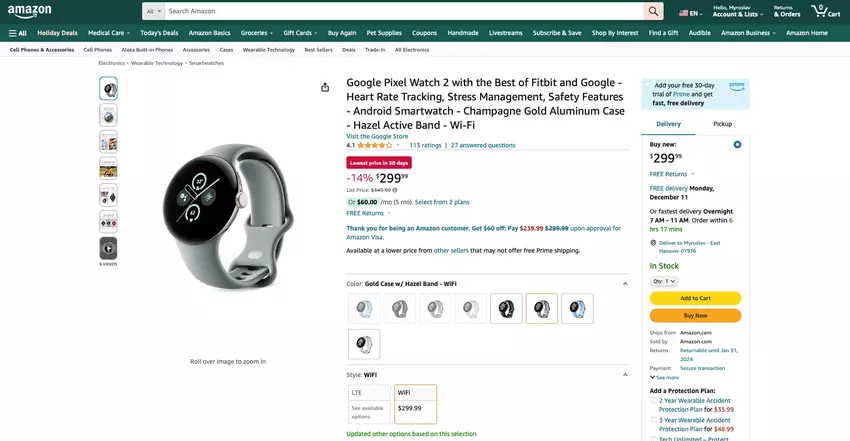 Google Pixel Watch 2 is voor het eerst verkrijgbaar op Amazon met $50 korting