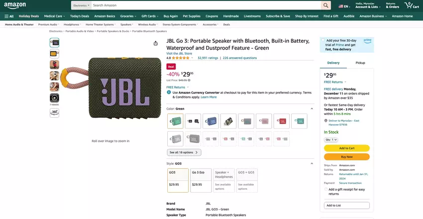 JBL Go 3 op Amazon: compacte draadloze luidspreker met IP67-bescherming voor $29 ($20 korting)